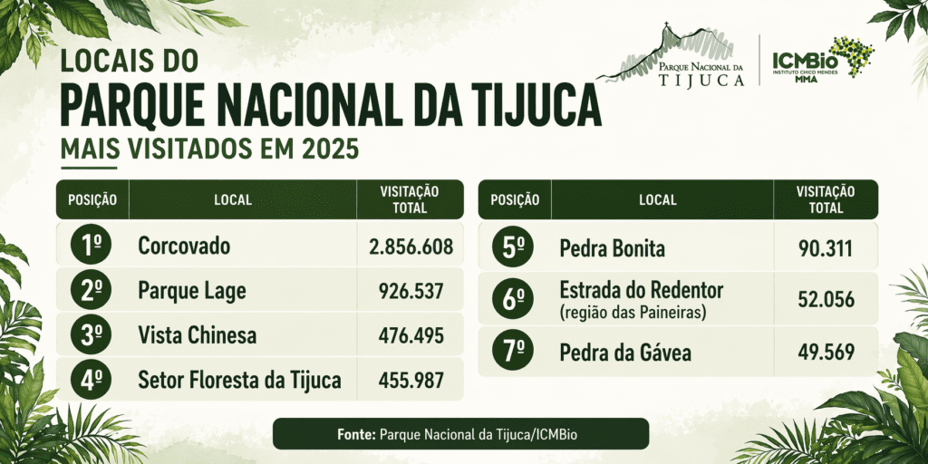 - Com mais investimentos, Parque Nacional da Tijuca chega a quase 5 milhões de visitantes e bate recorde em 2025 - 13/04/2026